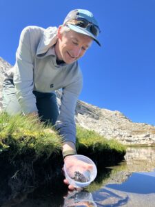I study Sierra Nevada aquatic communities and ecosystems, with a focus on the amphibians in alpine lakes. As the lead PI for the Mountain Lakes Research Group (MLRG; a name we gave ourselves), my current focus is on understanding the ecology and biology that underlie the decline and recovery of the mountain yellow-legged frogs (Rana muscosa and R. sierrae). This research unites population biology, disease ecology, and community ecology, and leverages collaborations with colleagues studying limnology, ecophysiology, immunology, statistics and mathematical biology, and more. In addition, I work hard to create and maintain relationships with the National Park Service, USFWS, CDFW, and the Oakland and San Francisco Zoos. These partnerships allow MLRG to lead many frog recovery actions (reintroductions) each year.